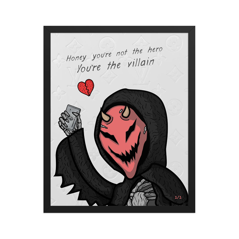 Lossi Creations - You're the Villain 1/1 Grey Framed Artwork